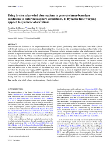 The structure and dynamics of the magnetospheres of the outer planets, particularly Saturn and Jupiter, have been explored both through remote and in-situ observations. Interpreting these observations often necessitates simultaneous knowledge of the solar-wind conditions impinging on the magnetosphere. Without an available upstream monitor, solar-wind context is typically provided using models initiated with either the output of magnetogram-constrained coronal models or, more commonly, in-situ observations from 1 AU. While 1-AU observations provide a direct measure of solar wind conditions, they are single-point observations and thus require interpolation to provide inputs to outer-heliosphere solar-wind models. In this study we test the different interpolation methods using synthetic 1-AU observations of time-evolving solar-wind structure. The simplest method is ``corotation'', which assumes solar-wind structure is steady state and rotates with the Sun. This method of reconstruction produces discontinuities in the solar-wind inputs as new observations become available. This can be reduced by corotating both back and forward in time, but this still introduces large errors in the magnitude and timing of solar wind streams. We show how the dynamic time warping (DTW) algorithm can provide around an order-of-magnitude improvement in solar-wind inputs to outer-heliosphere model from in-situ observations near 1 AU. This is intended to build the foundation for further work demonstrating and validating methods to improve inner-boundary conditions to outer-heliosphere solar-wind models, including dealing with solar wind transients and quantifying the improvements at Saturn and Jupiter.