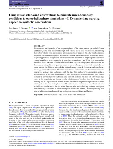 Using in-situ solar-wind observations to generate inner-boundary conditions to outer-heliosphere simulations, 1: dynamic time warping applied to synthetic observations.