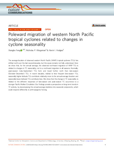 Poleward migration of western North Pacific tropical cyclones related to changes in cyclone seasonality.