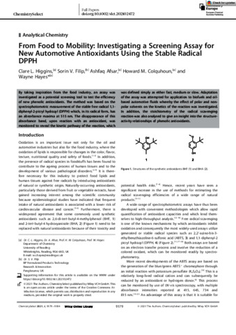 From food to mobility: investigating a screening assay for new automotive antioxidants using the stable radical DPPH.