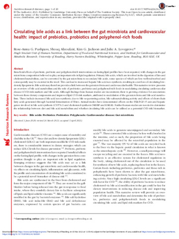72. Guo Z, Liu X, Zhang Q et al. (2011) Influence of consumption of probiotics on the plasma lipid profile: a meta-analysis of randomised controlled trials. Nutrition, Metabolism and Cardiovascular Diseases 21, 844-850.