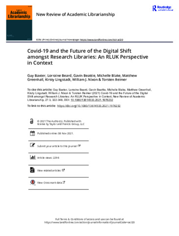 Greenhall, M. (2020b), Covid-19 and the digital shift in action, Research Libraries UK. Retrieved 2021, April 28, from https://www.rluk.ac.uk/wp-content/uploads/2020/06/Covid19-and-the-digital-shift-in-action-report-FINAL.pdf [Google Scholar]