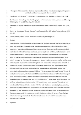 Management impacts on the dissolved organic carbon release from deadwood, ground vegetation and the forest floor in a temperate Oak woodland.