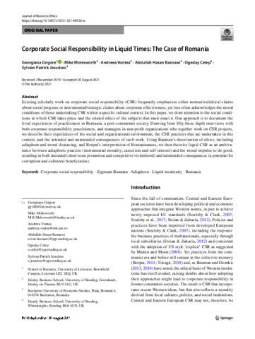 Corporate social responsibility in liquid times: the case of Romania.