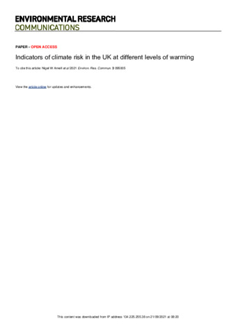 Assessments of the impacts of climate change are typically made using climate scenarios based on assumptions about future emissions of greenhouse gases, but policymakers and climate risk communicators are increasingly asking for information on impacts at different levels of warming. This paper provides this information for a set of indicators of climate risks in the UK for levels of warming up to 4 °C above pre-industrial levels. The results show substantial increases in climate risks at 2 °C, which is often inferred in the media to be a 'safe' level of climate change. In a 2 °C world, the chance of a heatwave is doubled, and the frequency of heat stress affecting people, crops and animals can be increased by a factor of five. Cooling degree days more than double, wildfire danger can increase by 40%–70%, the frequency of agricultural and water resources droughts doubles in England, and flood frequency in Wales increases by 50%. At 4 °C the increases in risk are considerably greater: heatwaves occur in virtually every year. The frequency of cold weather extremes reduces, but is not eliminated, with increasing warming. The rate of change in an indicator with warming varies across the UK. For temperature-based indicators this reflects variability in current climate, but for rainfall-based indicators reflects variations in the change in climate. Most indicators show a generally linear increase in risk with level of warming (although the change in risk from now is around 2.4 times higher in a 4 °C world than a 2 °C world because of warming experienced so far). However, some indicators—particularly relating to heat extremes—show a highly non-linear increase with level of warming. The range in change in indicator at a given level of warming is primarily caused by uncertainty in the estimated regional response of to increasing forcing.