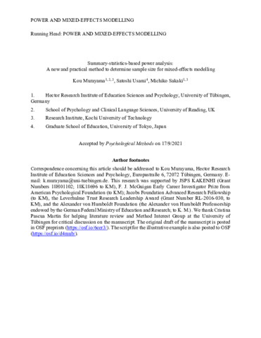 Summary-statistics-based power analysis: a new and practical method to determine sample size for mixed-effects modelling.