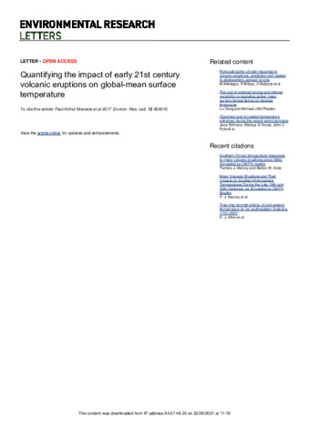 Quantifying the impact of early 21st century volcanic eruptions on global-mean surface temperature.