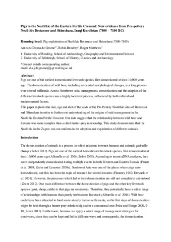 Pigs in the Neolithic of the Eastern Fertile Crescent: new evidence from pre-pottery Neolithic Bestansur and Shimshara, Iraqi Kurdistan (7800 – 7100 BC).