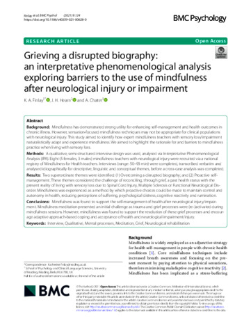 Grieving a disrupted biography: an interpretative phenomenological analysis exploring barriers to the use of mindfulness after neurological injury or impairment