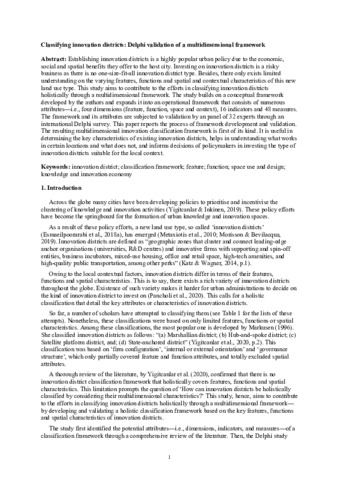 Classifying innovation districts: Delphi validation of a multidimensional framework.