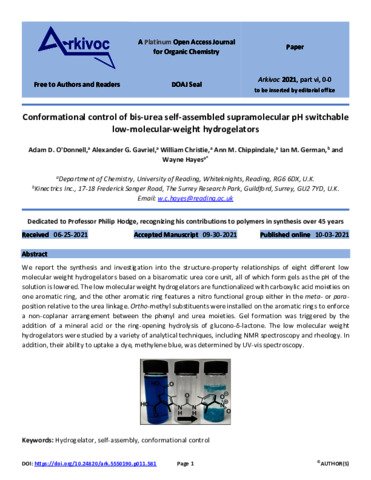 Conformational control of bis-urea self-assembled supramolecular pH switchable low-molecular-weight hydrogelators.