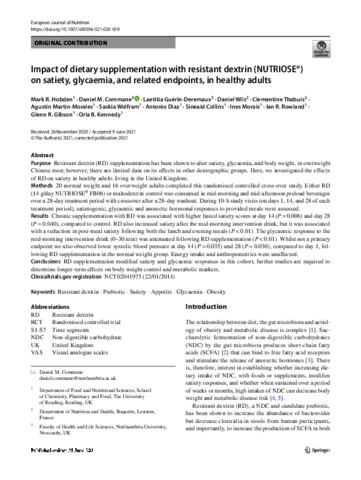 Impact of dietary supplementation with resistant dextrin (NUTRIOSE®) on satiety, glycaemia, and related endpoints, in healthy adults.