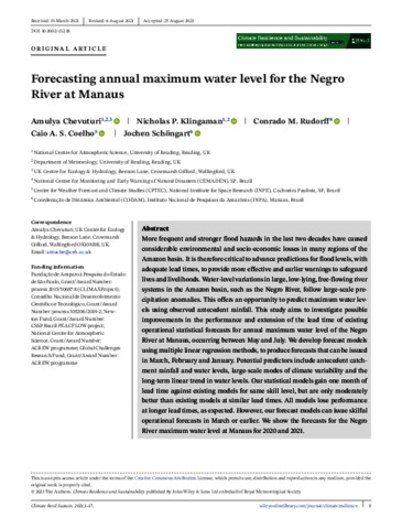 Forecasting annual maximum water level for the Negro River at Manaus.