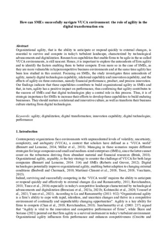 How can SMEs successfully navigate VUCA environment: the role of agility in the digital transformation era.