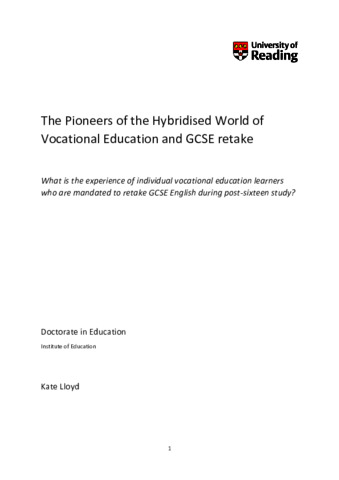 Lloyd, K. (2021) The Pioneers of the Hybridised World of Vocational Education and GCSE retake. EdD thesis, University of Reading. doi: 10.48683/1926.00100749