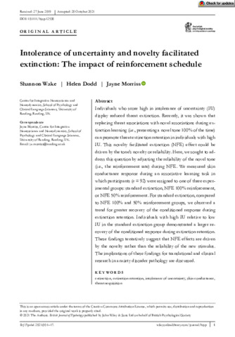 Intolerance of uncertainty and novelty facilitated extinction: the impact of reinforcement schedule.