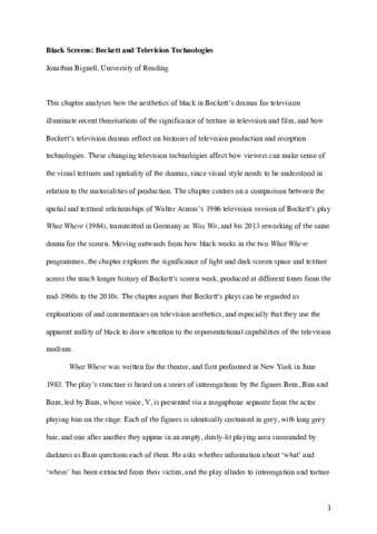 Black screens: Beckett and television technologies.