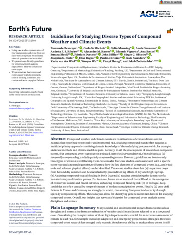 Bevacqua, E., Michele, C. D., Manning, C., Couasnon, A., Ribeiro, A. F. S., Ramos, A. M., Vignotto, E., Bastos, A., Blesić, S., Durante, F., Hillier, J., Oliveira, S. C., Pinto, J. G., Ragno, E., Rivoire, P., Saunders, K., van der Wiel, K., Wu, W., Zhang, T. and Zscheishler, J. (2021) Guidelines for studying diverse types of compound weather and climate events. Earth's Future, 9 (11). e2021EF002340. ISSN 2328-4277 doi: 10.1029/2021EF002340