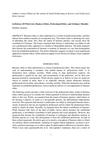 In defence of wish lists: business ethics, professional ethics, and ordinary morality