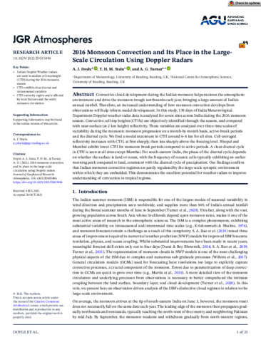 2016 Monsoon convection and its place in the large-scale circulation using doppler radars.