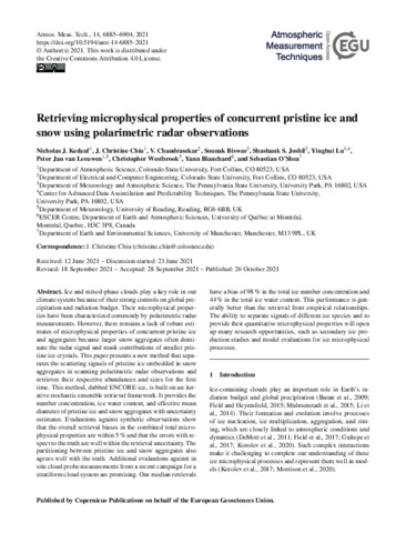 Retrieving microphysical properties of concurrent pristine ice and snow using polarimetric radar observations.