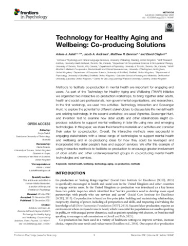 Technology for Healthy Aging and Wellbeing: co-producing solutions.