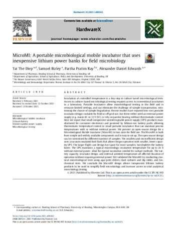 MicroMI: a portable microbiological mobile incubator that uses inexpensive lithium power banks for field microbiology.