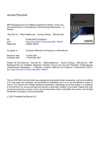 MRI radiogenomics for intelligent diagnosis of breast tumors and accurate prediction of neoadjuvant chemotherapy responses — a review.