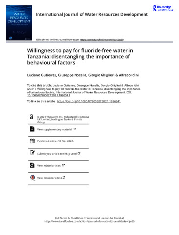 Willingness to pay for fluoride-free water in Tanzania: disentangling the importance of behavioural factors.
