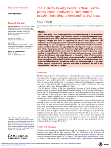Ellis, R. H. orcid id iconORCID: https://orcid.org/0000-0002-3695-6894 (2022) The J. Derek Bewley Career Lecture. Seeds-plants-crops-biodiversity-environment-people: illustrating understanding and ideas. Seed Science Research, 32 (3). pp. 118-125. ISSN 0960-2585 doi: 10.1017/S0960258521000295