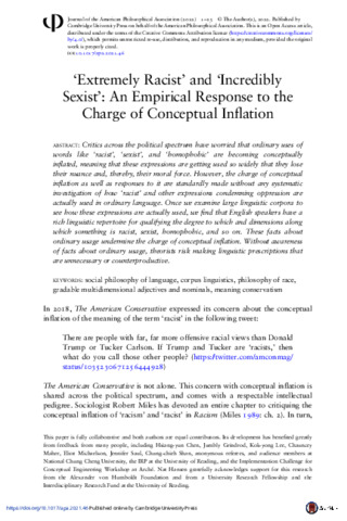'Extremely racist' and 'incredibly sexist': an empirical response to the charge of conceptual inflation.