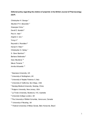 Editorial policy regarding the citation of preprints in the British Journal of Pharmacology (BJP).