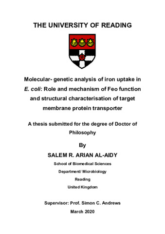 Al-Aidy, S. (2020) Molecular- genetic analysis of iron uptake in E. coli: Role and mechanism of Feo function and structural characterisation of target membrane protein transporter. PhD thesis, University of Reading. doi: 10.48683/1926.00101611