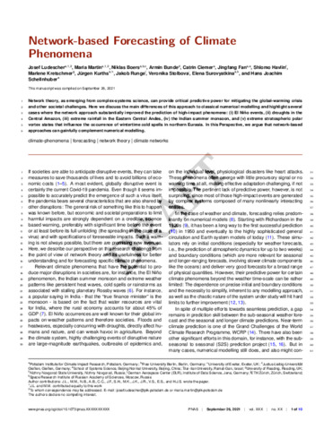 Uncontrolled Keywords | climate networks, forecasting, climate phenomena, network theory |