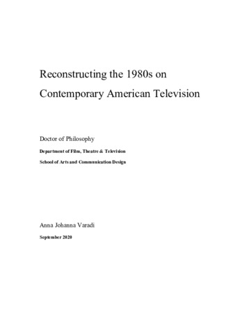 Varadi, A. J. (2021) Reconstructing the 1980s on contemporary American television. PhD thesis, University of Reading. doi: 10.48683/1926.00101660