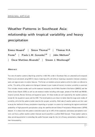 Weather patterns in Southeast Asia: relationship with tropical variability and heavy precipitation.