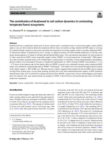 The contribution of deadwood to soil carbon dynamics in contrasting temperate forest ecosystems.
