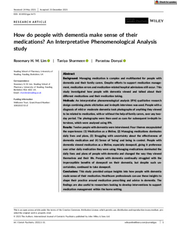 How do people with dementia make sense of their medications? An interpretative phenomenological analysis study.