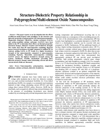 This paper reports on an investigation into the effects of different multi-element oxide nanofillers on the structure and dielectric properties of polypropylene (PP)-based nanocomposites. Magnesium aluminate (MgAl2O4), calcium carbonate (CaCO3) and surface-modified calcium carbonate (CaCO3T) have been added to the PP to determine their effects on thermal properties, structural changes, dielectric response and breakdown strength. The results show that PP nanocomposites containing MgAl2O4 possess lowered breakdown strength compared to unfilled PP. In contrast, adding CaCO3 to PP results in a higher breakdown strength of the nanocomposites compared to nanocomposites containing MgAl2O4. Meanwhile, nanocomposites containing CaCO3T possess the highest breakdown strength among the systems considered. Possible mechanisms governing these dielectric property changes under alternating current and direct current electric fields are discussed.