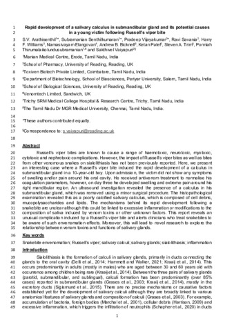 Arathisenthil, S. V., Senthilkumaran, S., Vijayakumar, P., Savania, R., Williams, H. F., Elangovan, N., Bicknell, A. B., Patel, K., Trim, S. A., Thirumalaikolundusubramanian, P. and Vaiyapuri, S.