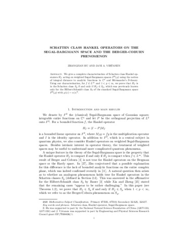 Hu, Z. and Virtanen, J. A. (2022) Schatten class Hankel operators on the Segal-Bargmann space and the Berger-Coburn phenomenon. Transactions of the American Mathematical Society, 375. pp. 3733-3753. ISSN 1088-6850 doi: 10.1090/tran/8638