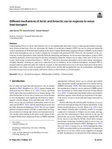 Different mechanisms of Arctic and Antarctic sea ice response to ocean heat transport.