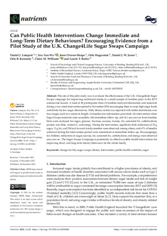 long-term dietary behaviours? Encouraging evidence from a pilot study of the U.K. Change4Life Sugar Swaps campaign.