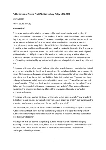 Casson, M. orcid id iconORCID: https://orcid.org/0000-0003-2907-6538 (2021) Public service or private profit? British railway policy 1825-2020. Journal of the railway and canal historical society, 40 (4). pp. 198-214. ISSN 0033-8834
