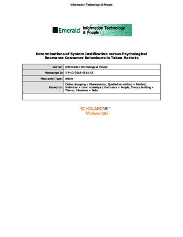 Determinations of system justification versus psychological reactance consumer behaviours in taboo markets.