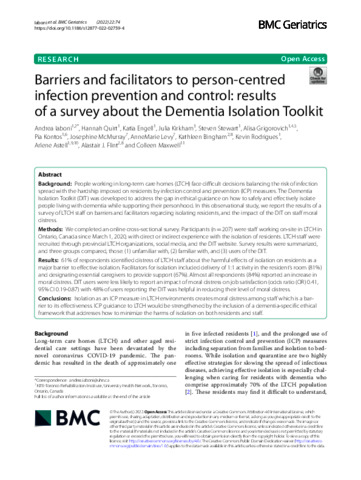 Barriers and facilitators to person-centred infection prevention and control: results of a survey about the Dementia Isolation Toolkit.