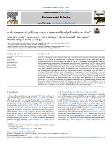Anthropogenic air pollutants reduce insect-mediated pollination services.
