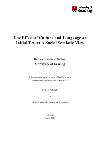 Li, E. (2020) The effect of culture and language on initial trust: a social semiotic view. PhD thesis, University of Reading. doi: 10.48683/1926.00102270