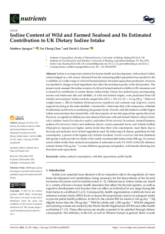 Iodine Content of wild and farmed seafood and its estimated contribution to UK dietary iodine intake