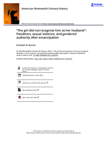 “The girl did not recognise him as her husband”: freedmen, sexual violence, and gendered authority after emancipation.